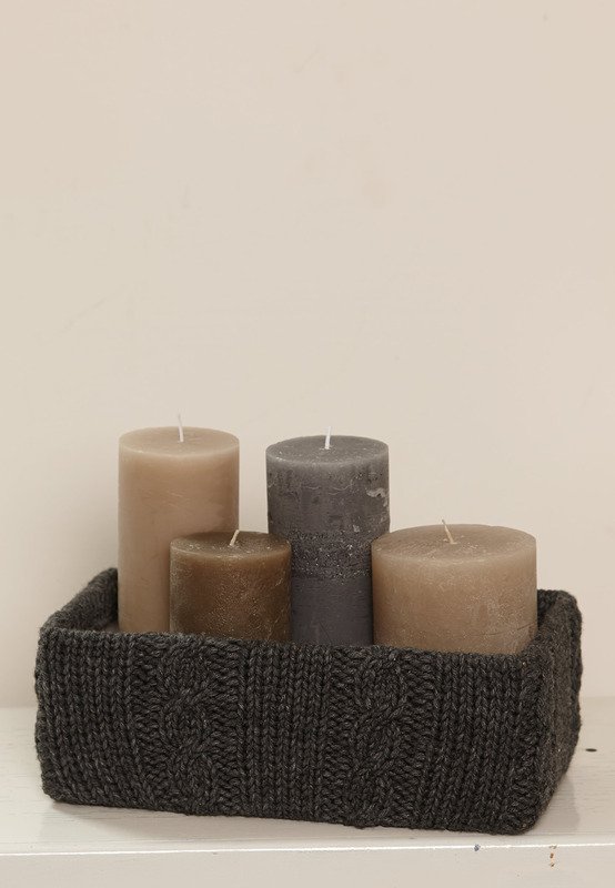 Lana Grossa „Mille II” (50% Schurwolle, 50% Polyacryl, LL ca 55 m/50 g): rechteckige Schachtel: ca 100 g Dunkelgrau Fb 16 kleine Hutschachtel: ca 300 g Natur Fb 17 große Hutschachtel: ca 350 g Hellgrau Fb 43 addi-Rundstricknd Nr 5 und 6, je 40 cm und 60 lang, addi-Nadelspiel Nr 6 1 3er-Satz Schachteln „Käresta” von Ikea, Art 202.952.42 (gebraucht werden die große und die mittlere Schachtel) 1 Schuhschachtel, 11 cm hoch x 15 cm breit x 30 cm lang Elastic-Kordel von Prym, Art 59976, Fb 065 25 m selbstklebendes Hakenband, Fb Weiß, 20 mm breit von Prym, Art 968 920 4 Magnet-Lederschließen von Union Knopf, Art 59976, in Schwarz Fb 80.
