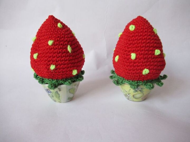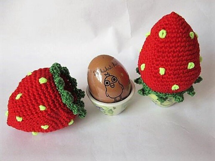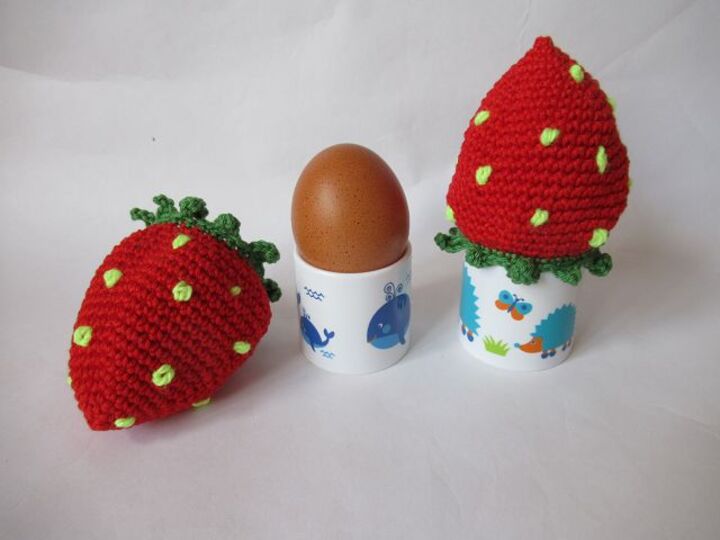 Die Eierwärmer passen auf Eier mittlerer Größe. Für große Eier evtl . 2 - 3 Maschen mehr in den Runden ohne Zunahme häkeln oder dickeres Garn und / oder eine dickere Häkelnadel verwenden.