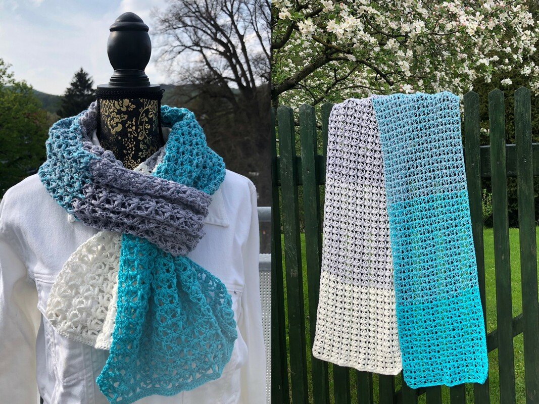 Der Schal kann in beliebiger Breite und Länge gearbeitet werden.