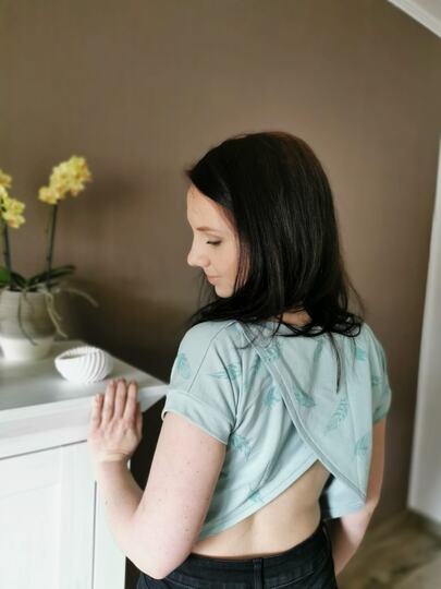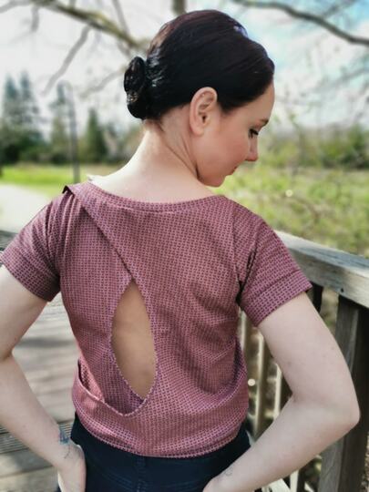 Das Top ist auf Croplänge ausgelegt und hat einen legeren Sitz. Alternativ kannst du das Shirt auch oversized nähen.