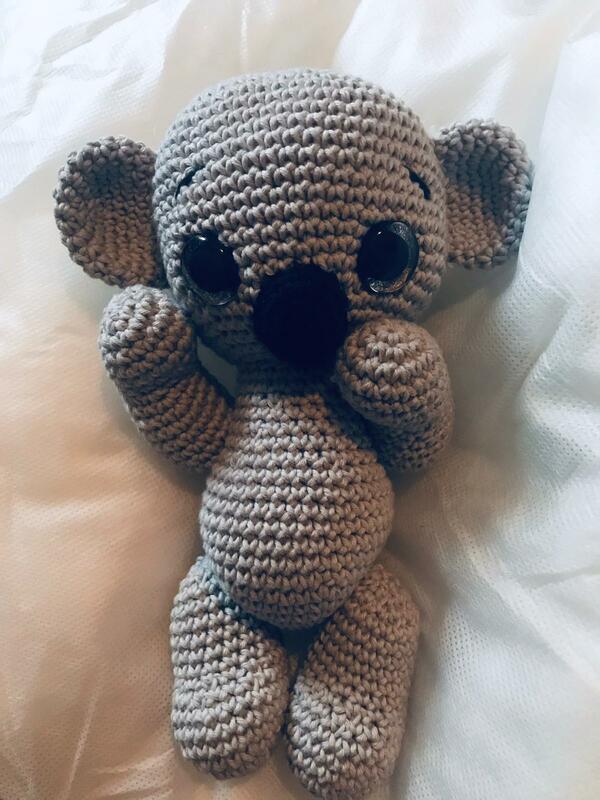 Ein kleiner Koala mit grossen Kulleraugen, beweglichen Gliedmassen und einer Schmusedecke. 9 Seiten Schritt für Schritt Anleitung mir vielen Bildern