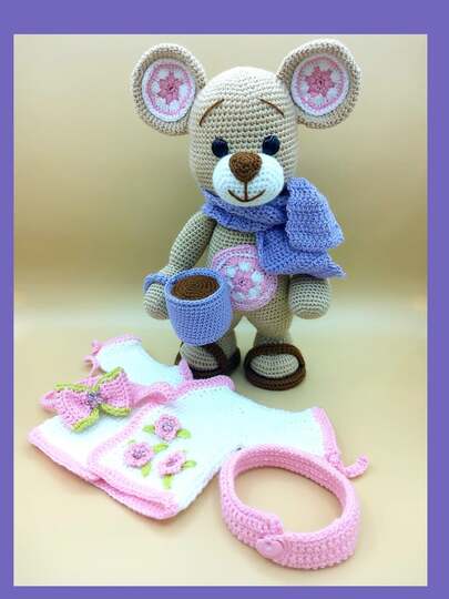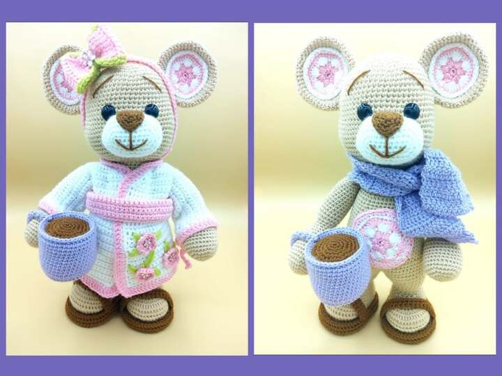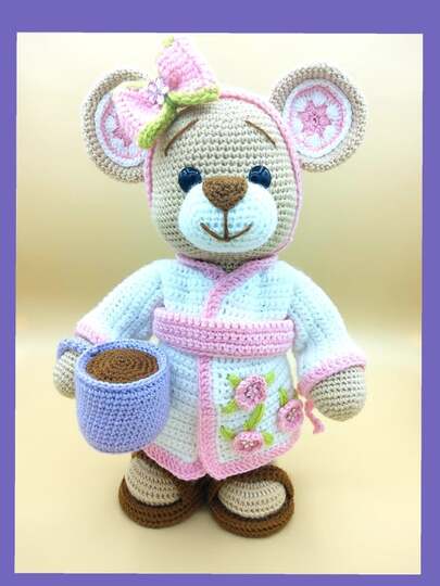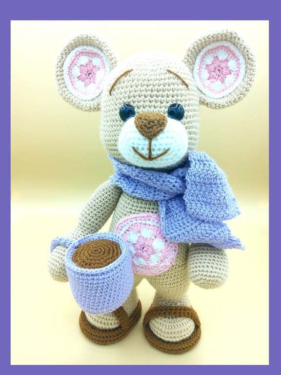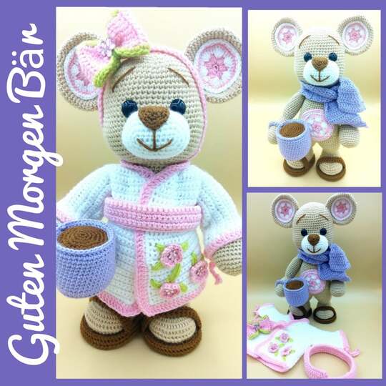 Ich habe den Guten Morgen Bär mit einer Nadelstärke von 2,0 und dazu passender Wolle gearbeitet und er hat bei mir eine Größe von ca. 30 cm.