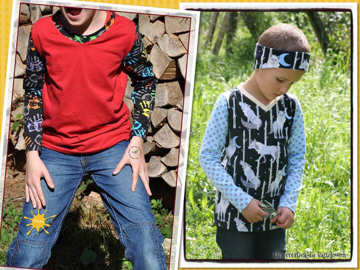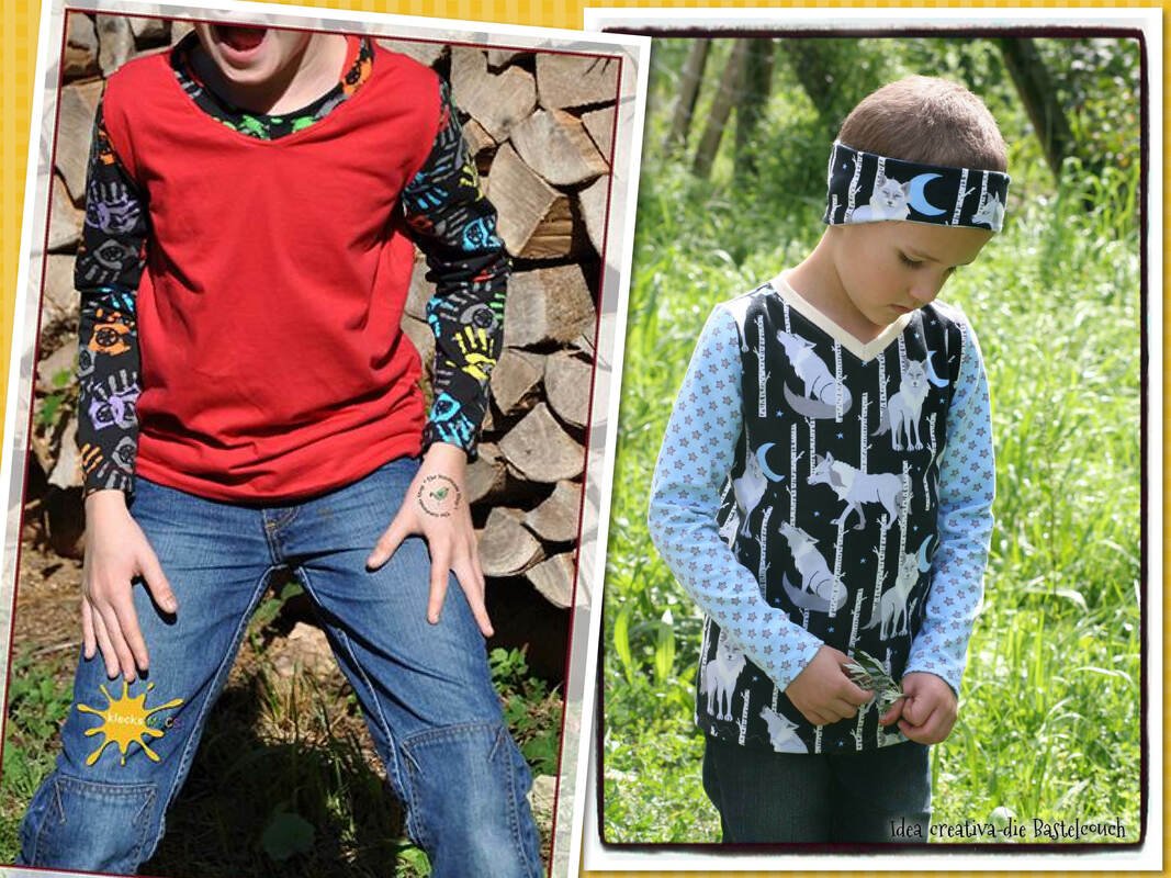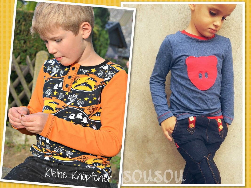 klecksMACS Leisure Time for Boys enthält den Schnitt für ein schmal geschnittenes Lang- sowie Kurzarm-Shirt mit vier verschiedenen Ausschnitten. Einerseits kann man mit diesem E-Book einen ganz gewöhnlichen Rundhalsausschnitt nähen, aber auch der V-Ausschnitt sowie eine schmale und eine breite Knopfleiste sind vorhanden. Somit benötigt man nur einen Grundschnitt und hat gleich vier verschiedene Shirts im Schrank liegen.