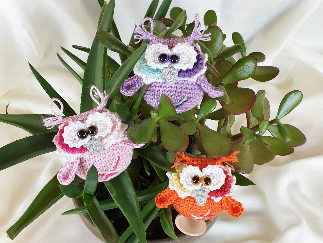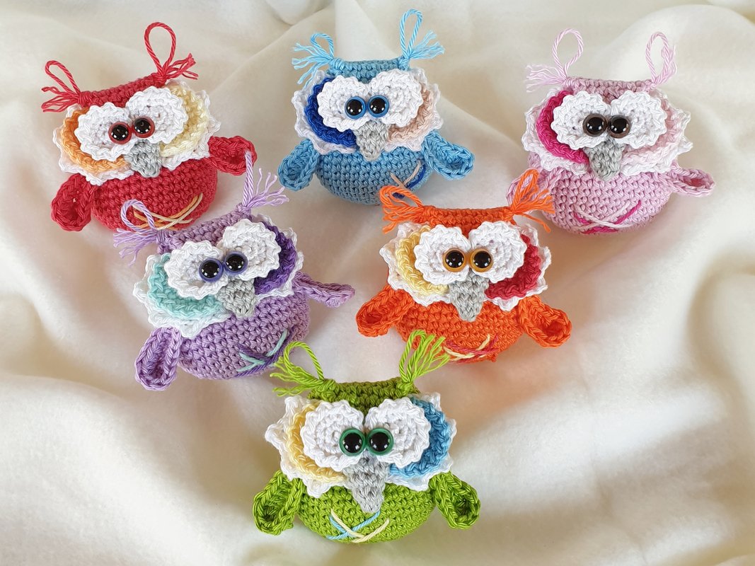 Die Eulen werden mit der angegebenen Wolle ca 7cm hoch