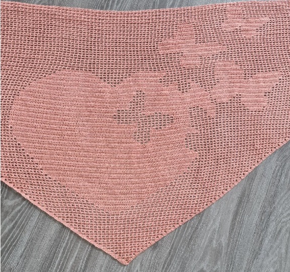 Dieses Motiv - Tuch ist im Filet - Stil gehäkelt und zeigt sich mit einem Herz, das sich in Schmetterlinge verwandelt.
