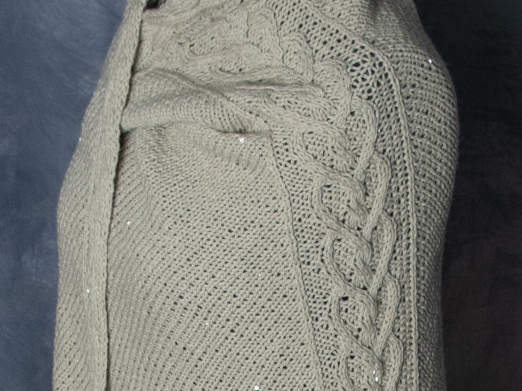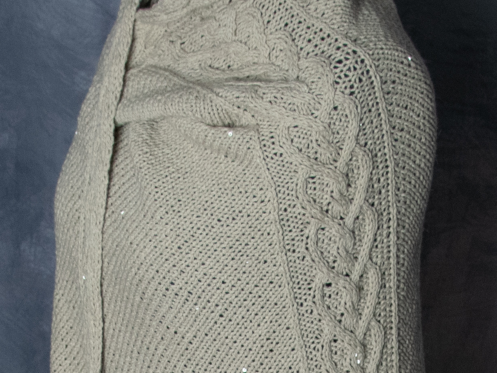 Ich habe 2 Größen integriert. Die kleine Größe ergibt ein Hals- und Schultertuch, die große Größe einen Überwurf, der an kalten Sommerabenden auch 2 Personen ein bisschen Wärme spendet.
