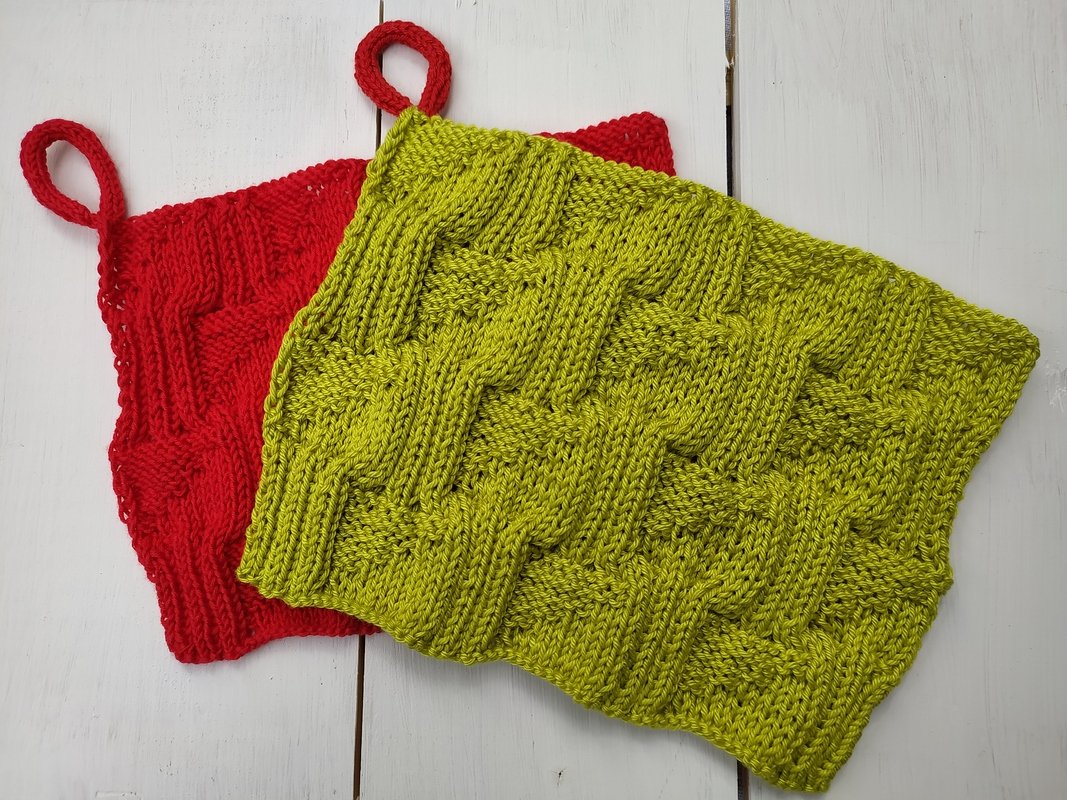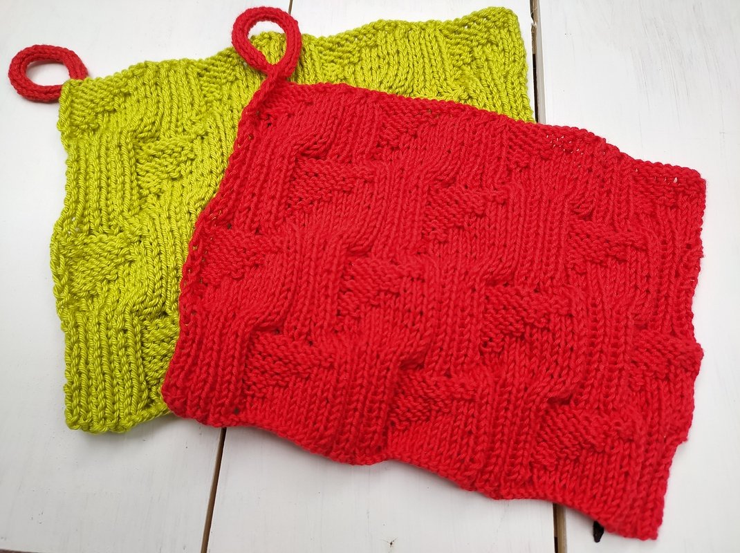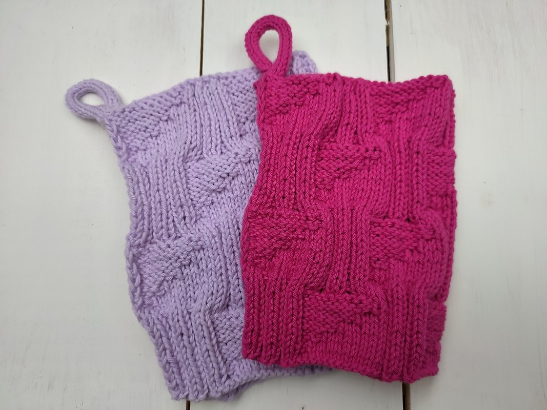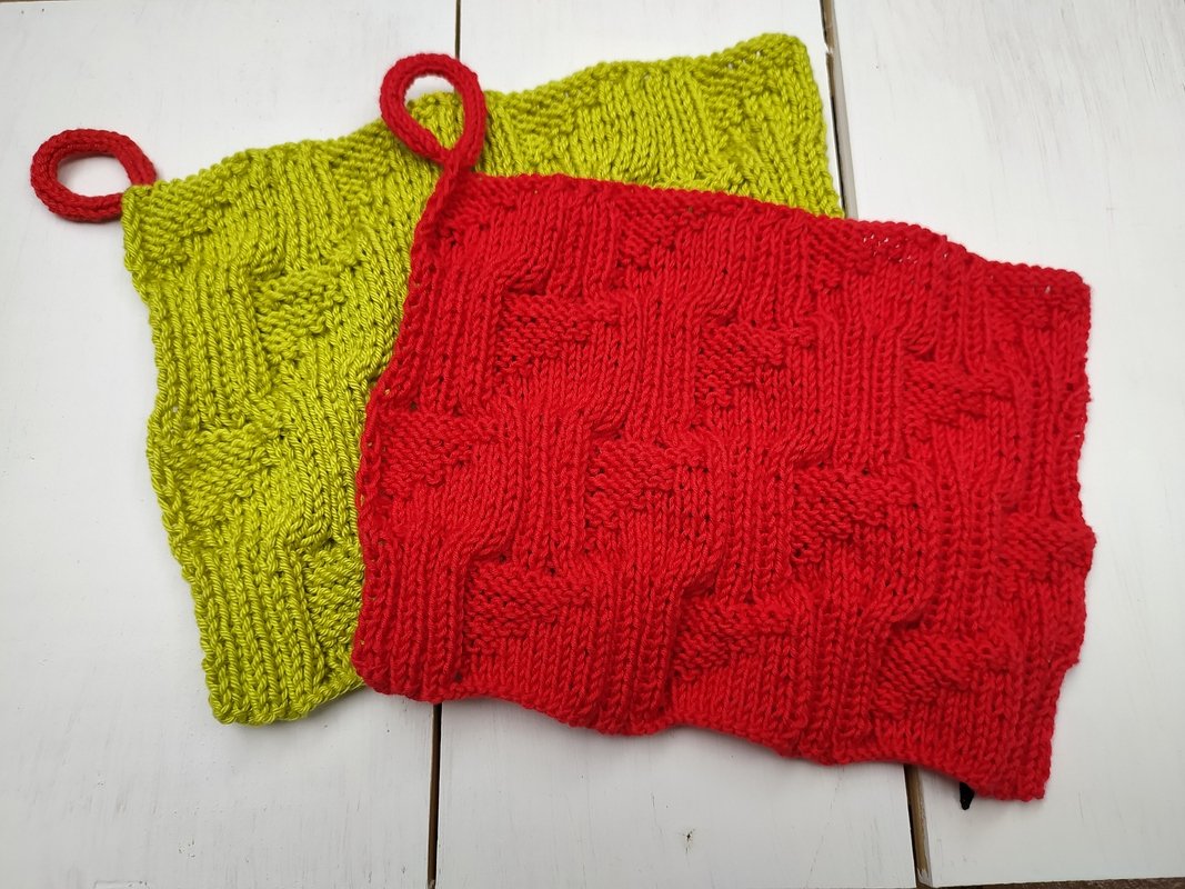 Möchte man lieber ein Tuch haben, welches auch als Topfuntersetzer oder evtl. auch als Topflappen dienen soll, dann wäre ein Schulgarn mit einer Lauflänge von 87 m / 50 g besser.