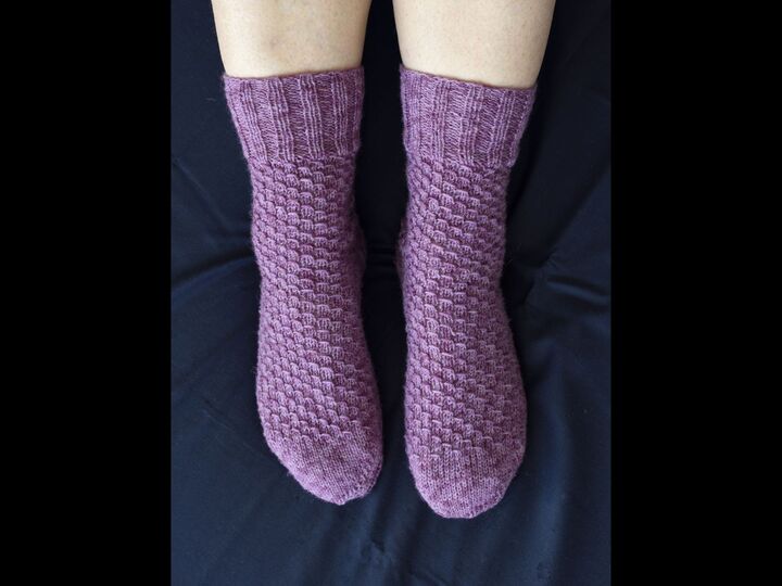 Kuschelige Wohlfühlsocken mit meinem Lieblingsmuster: eine einfache Überzugtechnik ergibt dieses attraktiv strukturierte Muster. Zusammen mit einem dezent gemusterten Garn ein garantierter Hingucker. Und natürlich auch in uni schön!