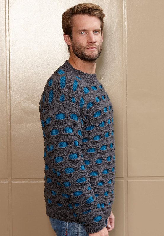 ONline „Starwool Maxi“ (100% Merinowolle, LL ca 80 m/50 g): ca 950 (1000-1050) g Grau Fb 18 und 400 (450-450) Petrol (Fb 26) Prym-Stricknd Nr 5 und 5,5, Prym-Rundstricknd Nr 5, 60 cm lang.