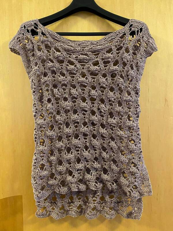 Die Tunika Fanny wird an einem Stück gehäkelt. Wobei mit dem Vorderteil begonnen wird und danach das Rückenteil direkt dran gehäkelt wird.