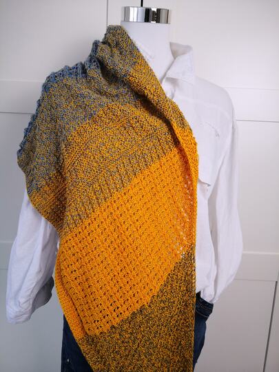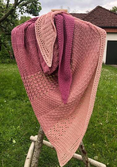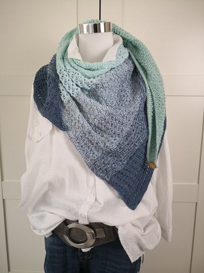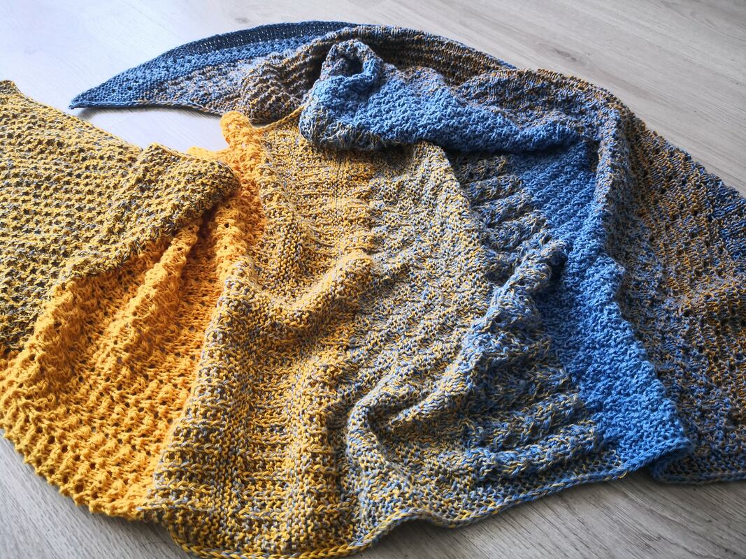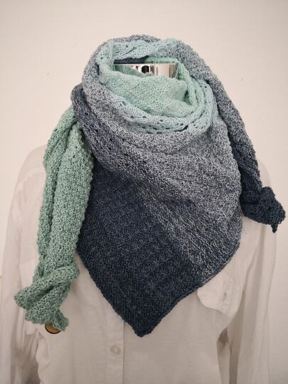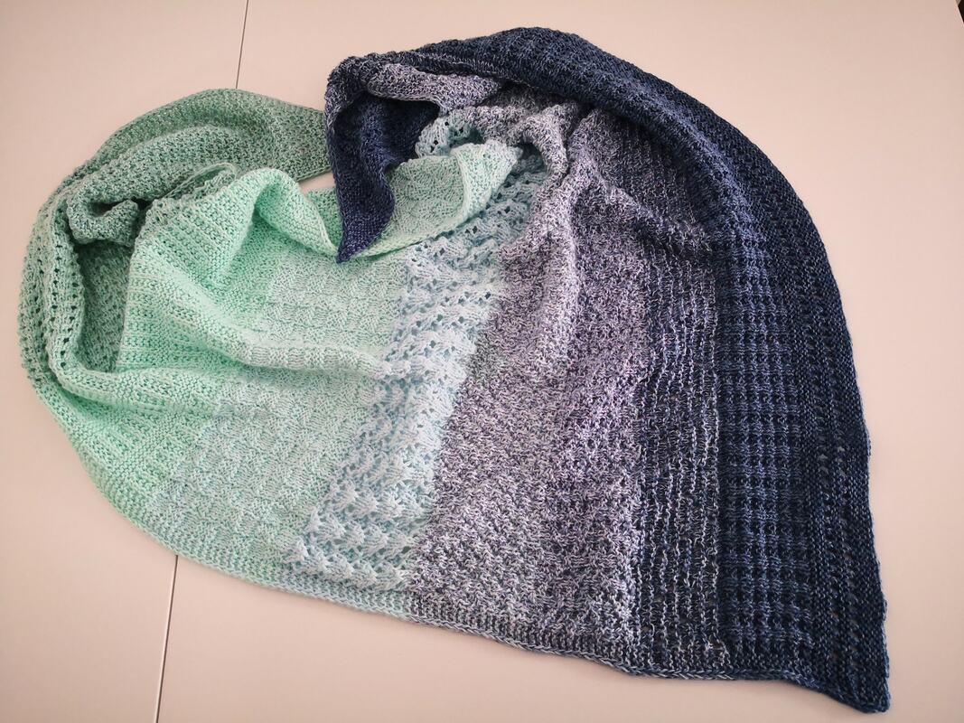 Die Beispieltücher wurden mit dem Farbverlaufsgarn von Mein Farbrausch in 4 fädig mit 1000 Meter Lauflänge gestrickt.
