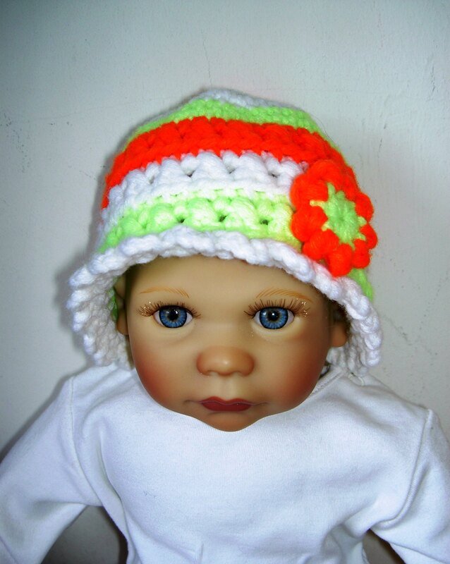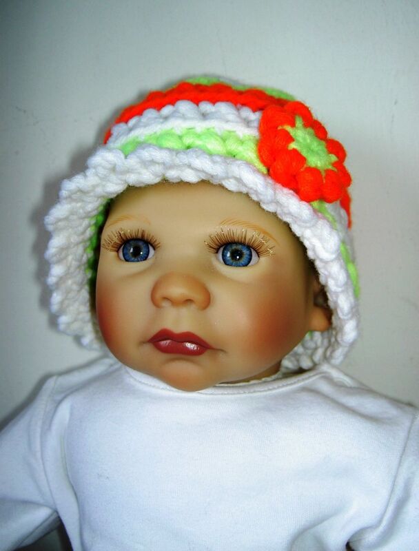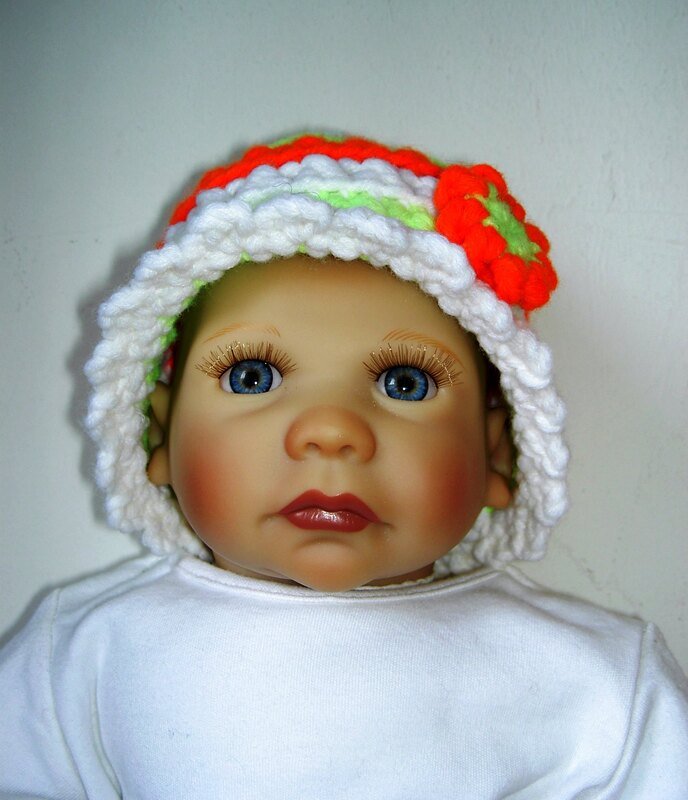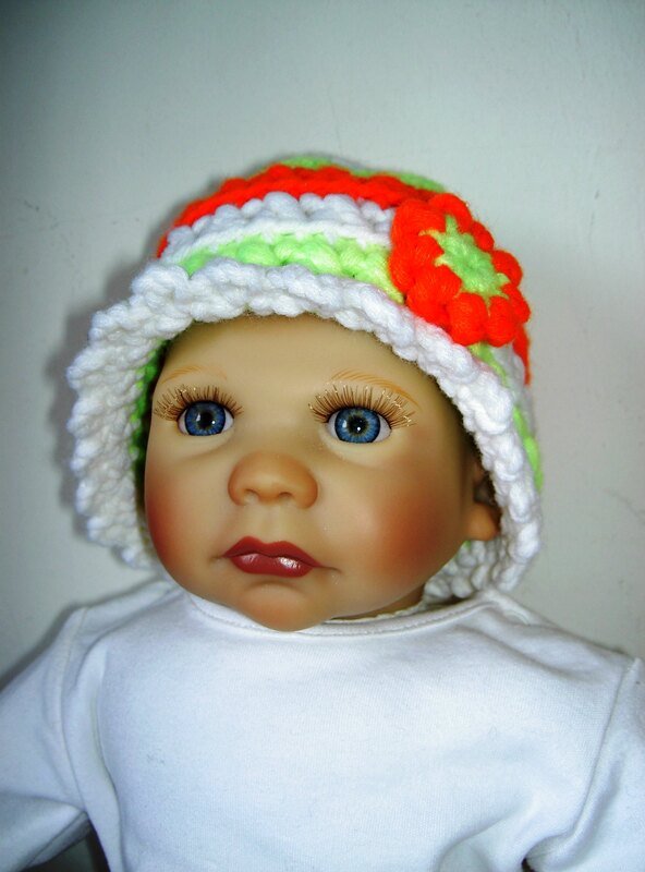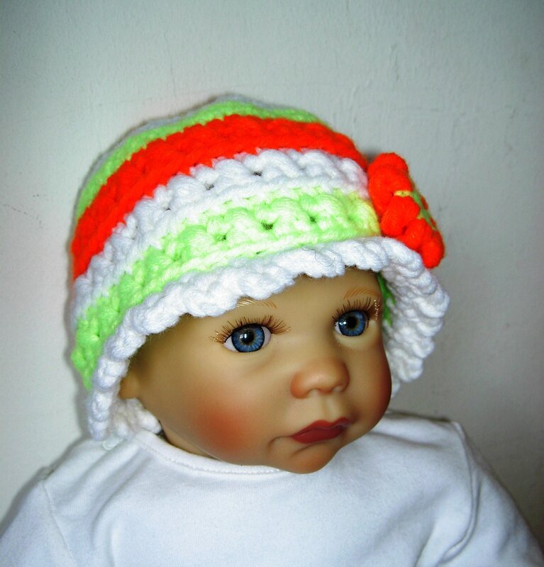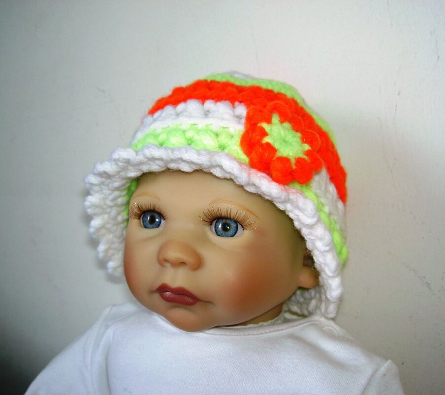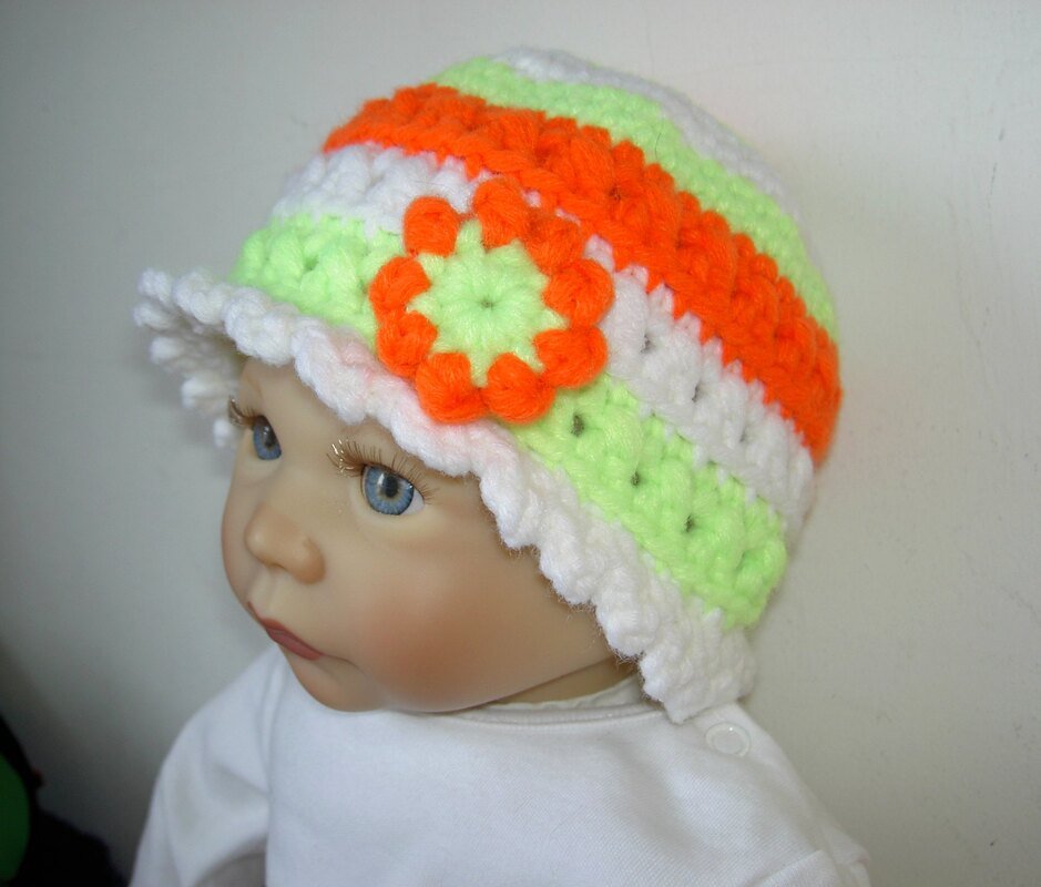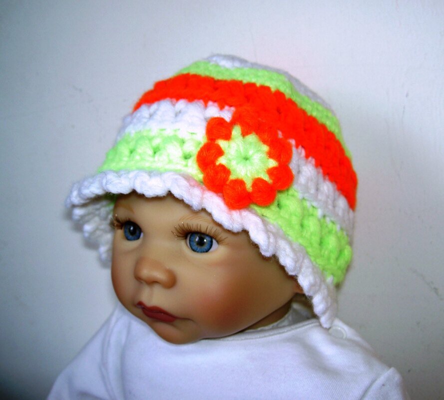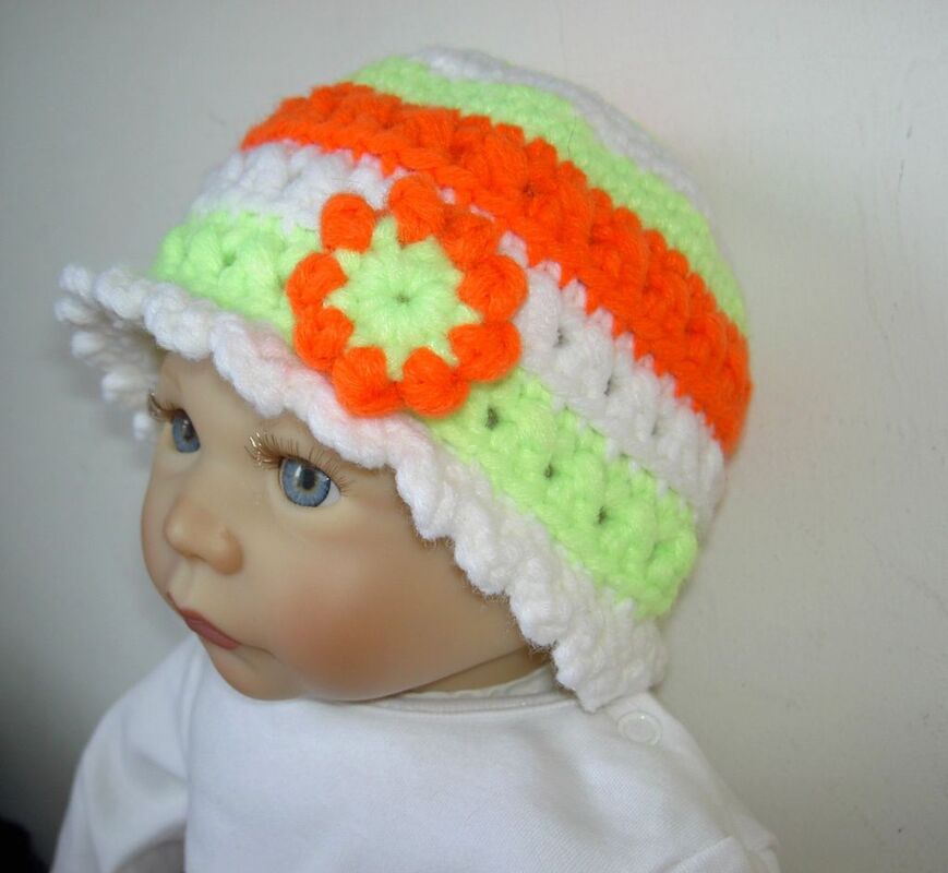 Häkelanleitung für Baby-/Kinderhut bis ca. 2 Jahre. Beschrieben werden 3 Größen und die Häkelblume.