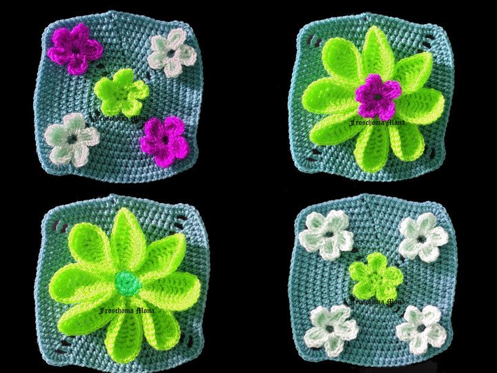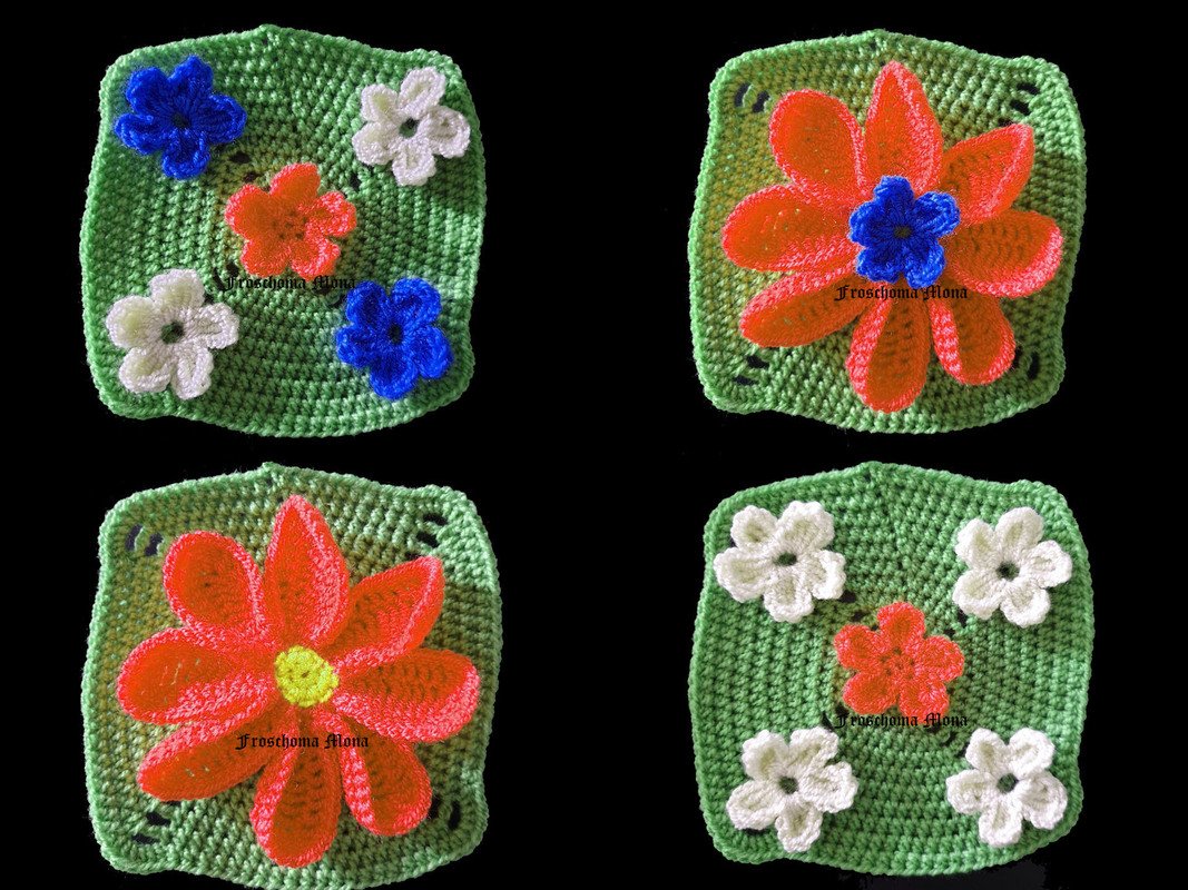 Kombiniere Grannys ohne Blumen und Grannys mit Blumen und stelle dir so ein Unikat her.
