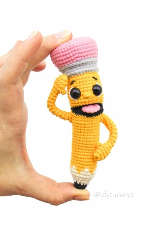 Mit diesem Häkelmuster können Sie ein Bobby Bleistift nach dem Originalmuster von Olya Usolya häkeln.