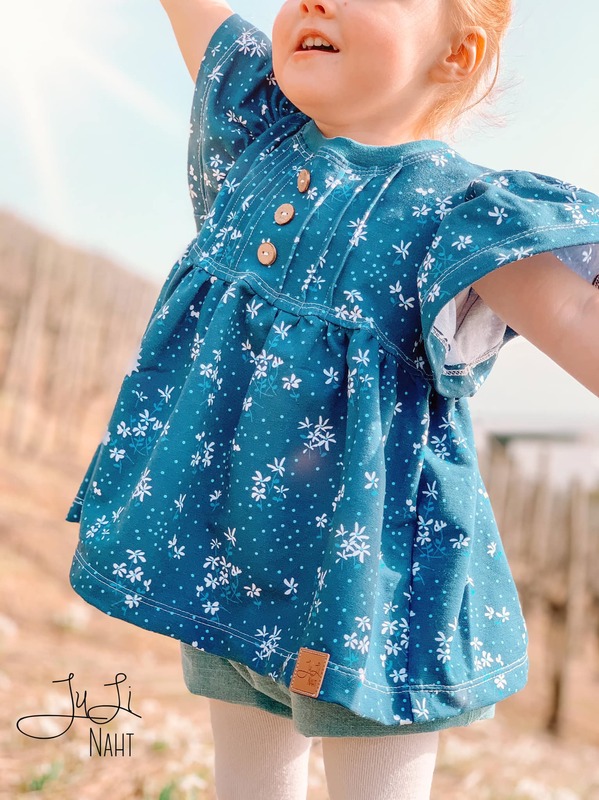 Mit meinen Schnittmustern erhältst du eine ausführlich bebilderte Schritt für Schritt Anleitung, die mit Näherfahrung gut zu meistern ist. Bei diesem Schnitt handelt es sich um das Biesen- Kleid / Tunika Little Miss Sweety Pie mit optionalen Biesen am Oberteil- Du kannst aus verschiedenen Ärmelvarianten wählen, ob kurze oder lange Ballonärmel, Rüschenärmel oder Ärmellos. Für die Variante als Kleid sind auch Nahttaschen möglich. Little Miss Sweety Pie kann aus leichter Webware mit Knopfleiste am Rücken oder aus Maschenware wie Jersey genäht werden.