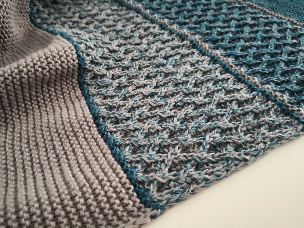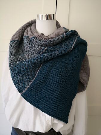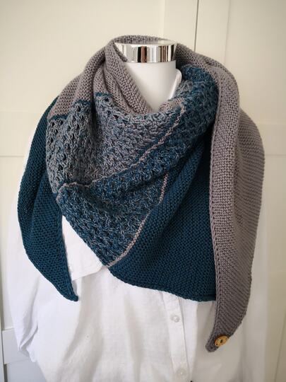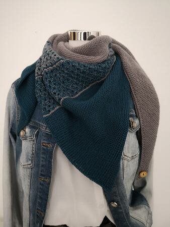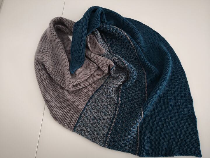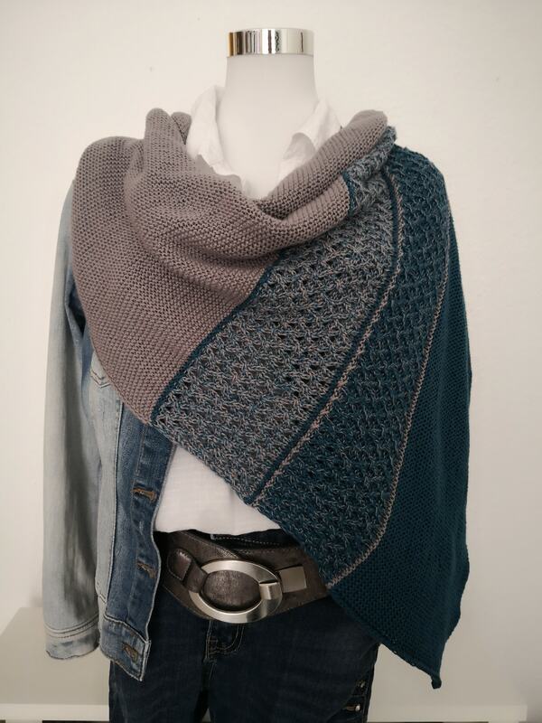 Ronja ist ein asymmetrisches Tuch mit 2 verschiedenen Mustern.