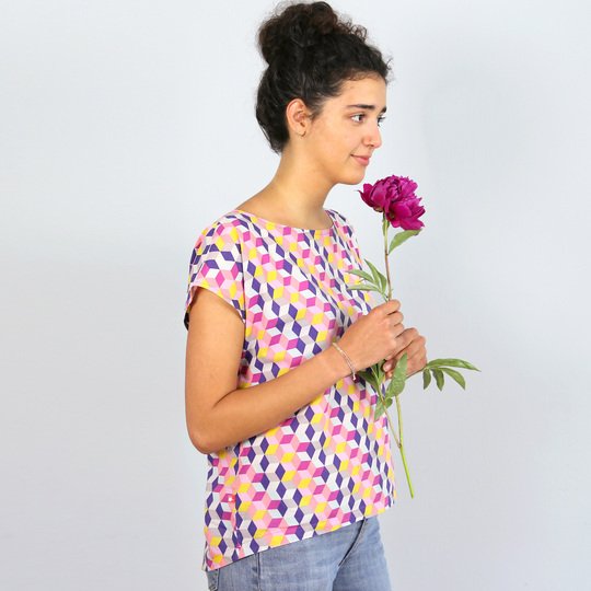 Wer noch eine luftige Bluse für einen lauen Sommerabend sucht, ist bei FRAU LIAH an der richtigen Adresse. Diese lockere Bluse mit weitem Armloch und nach hinten verlängertem Saum ist so fix fertig, dass Du schnell wieder raus in die Sonne kannst. FRAU LIAH ist die perfekte Begleiterin im Büro, im Urlaub oder beim Stadtbummel. Und wer mag, kann sie immer wieder verändern. Probier doch mal eine Brusttasche aufzunähen oder Vorder- und Rückenteil in verschiedenen Farben zu nähen... bestimmt fällt Dir noch mehr ein um FRAU LIAH immer wieder zu verwandeln.