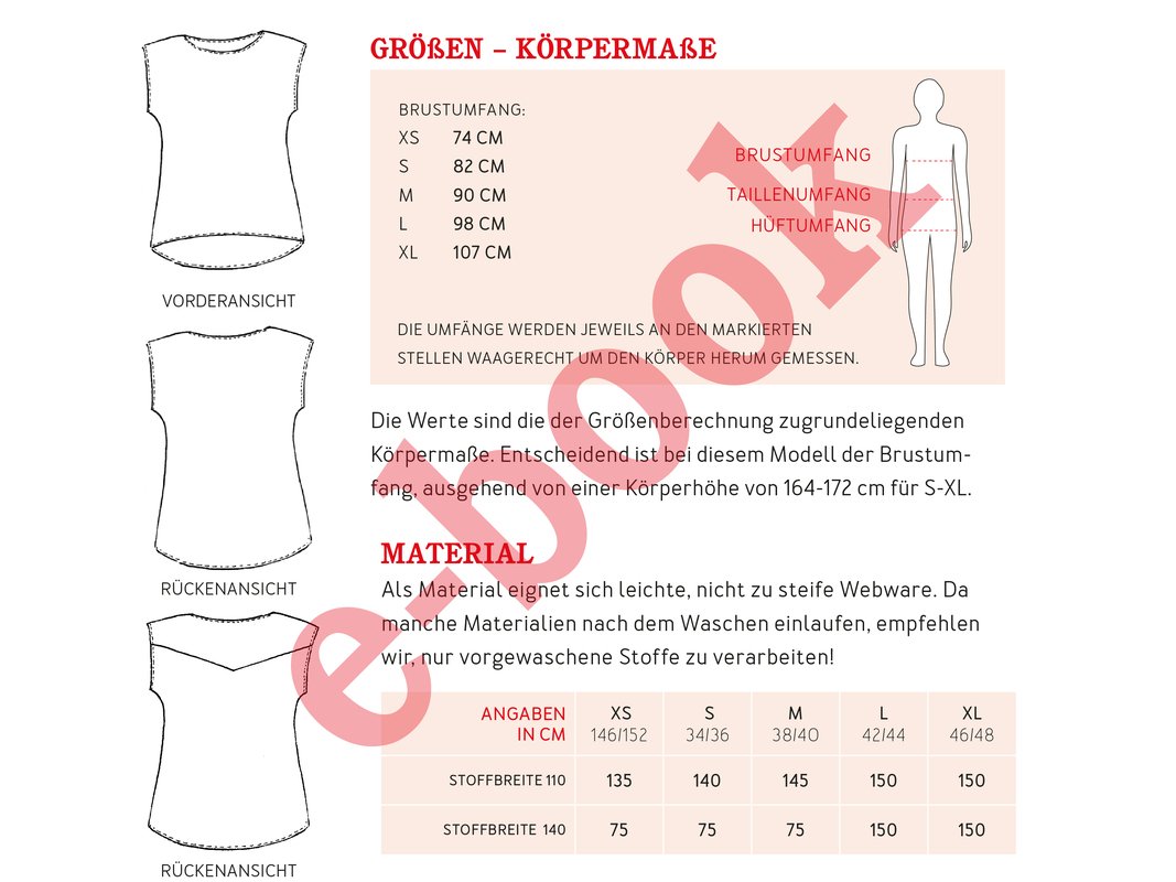 Umfang: Nähanleitung - 8 Seiten, Schnittmuster - 12 Seiten (die zusammengeklebt werden müssen)
