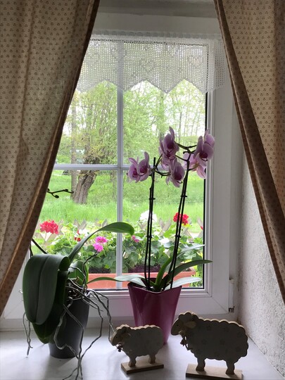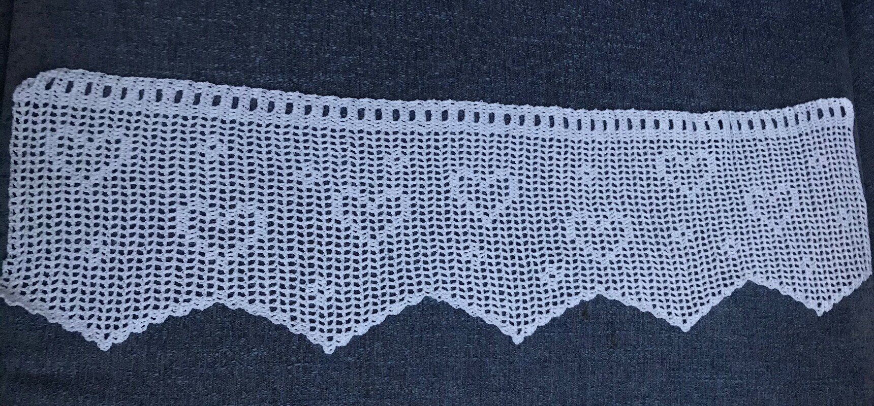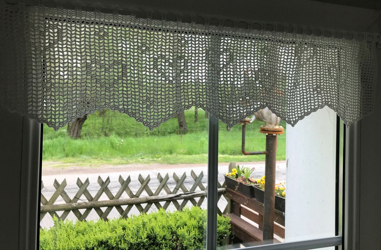 Die Anleitung ist einfach erklärt. Die Gardine besteht aus Luftmaschen und Stäbchen.