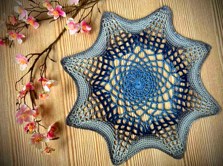 Tischdeckchen/Teppich SEESTERNCHEN ist ein tolle Häkelhandarbeit und sieht doch wirklich spannend aus....bezaubernd auf den Tisch,...auch als Platzdeckchen + kleiner Badezimmerteppich....