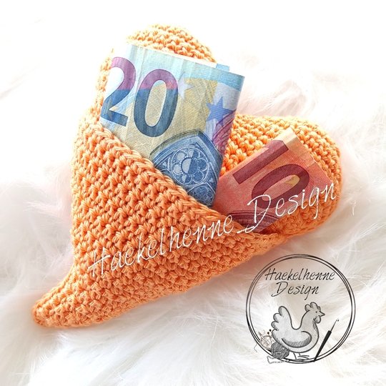 Mit dieser tollen Anleitung kannst Du Dir ein ganz besonderes Herz mit Einstecktasche häkeln. Das Herz ist unten etwas geschwungen und an den Seiten etwas ungleich, was das Besondere daran ausmacht. Die Einstecktasche bietet Platz für ein Geldgeschenk, einen Gutschein, eine liebe Botschaft und vieles mehr.