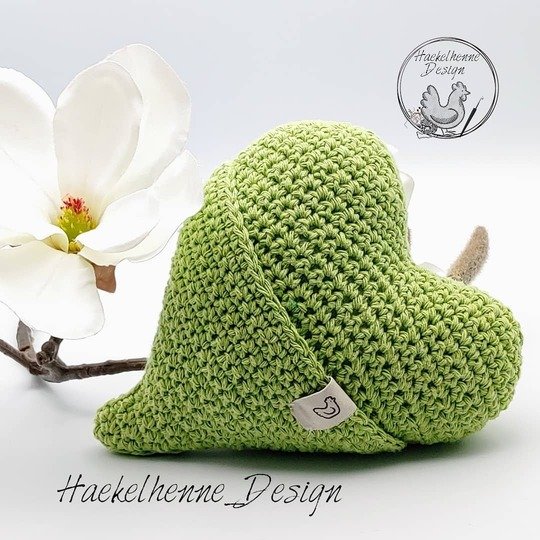 Das Herz ergibt mit einem Baumwollgarn und der Nadelstärke 2,5 eine Größe von 15 cm in der Höhe und 11 cm in der Breite. Durch die Verwendung von anderem Garn und einer anderen Nadelstärke, kann die Größe natürlich variieren.