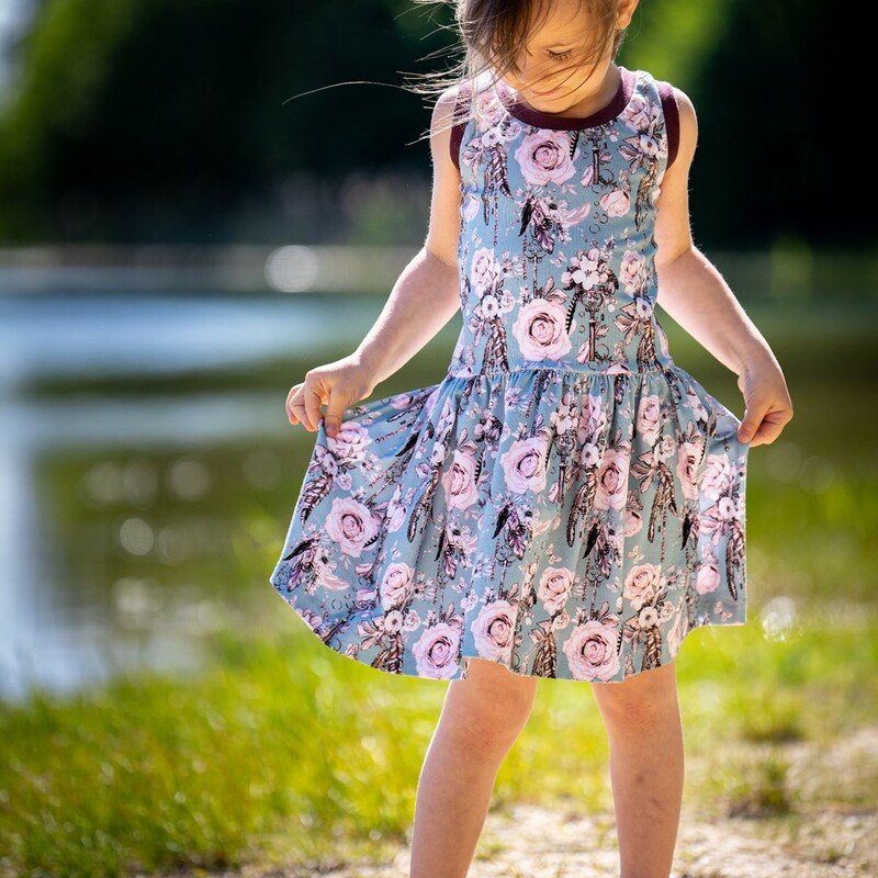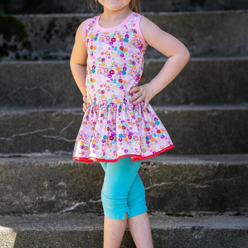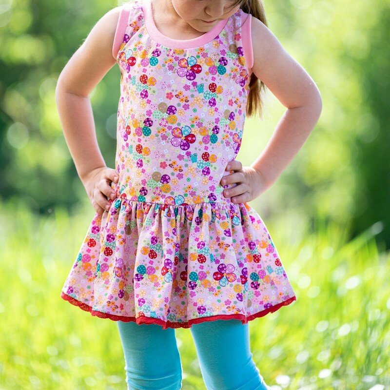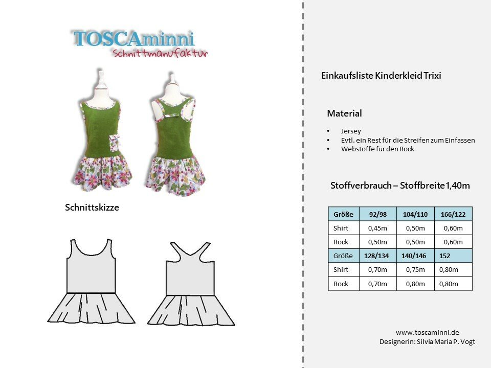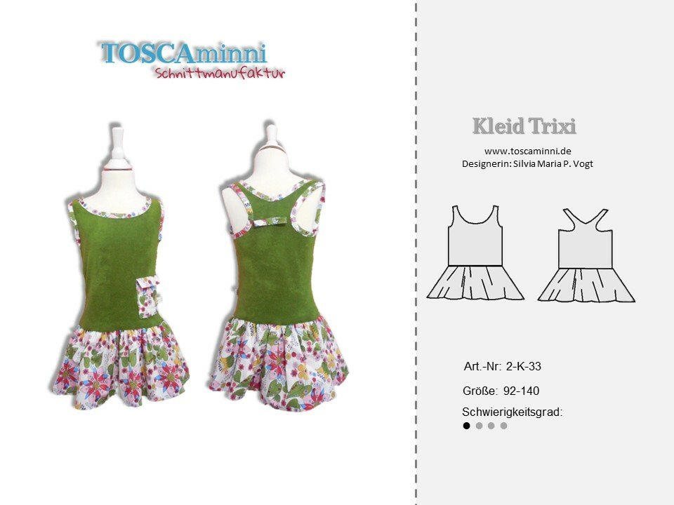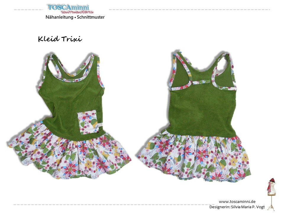 Schnittmuster für ein Sommerkleid mit einem angesetzem Rock. Das Oberteil ist als Tanktop gestaltet, als Hingucker wird es vorne mit einem kleinen Täschchen verziert. Die Nähanleitung ist bebildert, so dass auch Anfänger den Schnitt nachnähen können. Eine Overlock wäre von Vorteil.
