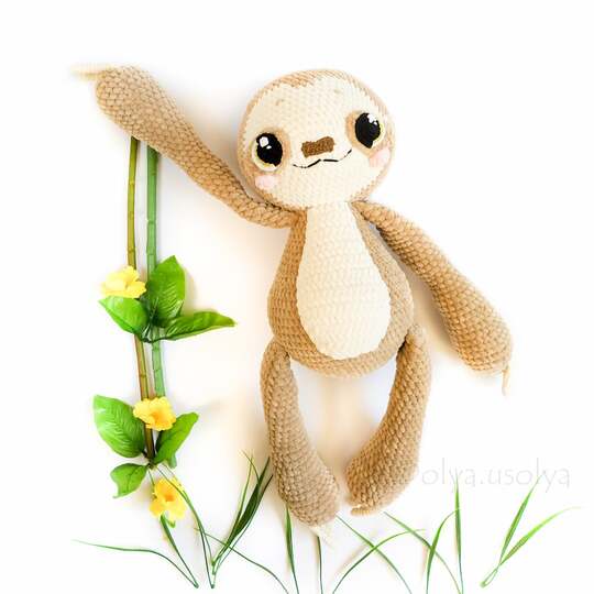 Mit diesem Häkelmuster können Sie ein Faultier Lenny nach dem Originalmuster von Olya Usolya aus Plüschgarn häkeln.