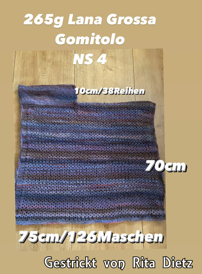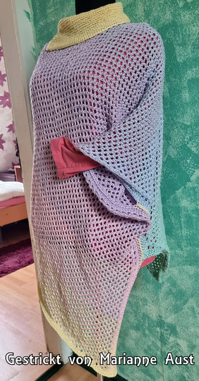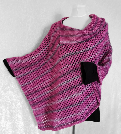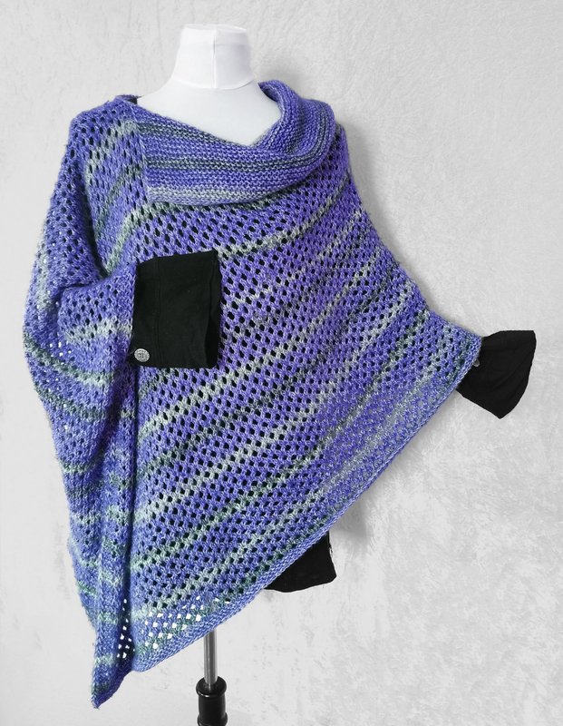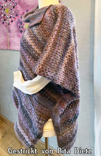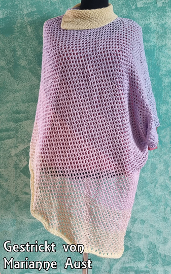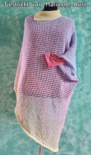 Der Poncho wird in Einheitsgröße gearbeitet, er passt für Konfektionsgrößen von ca. 38 – 50.