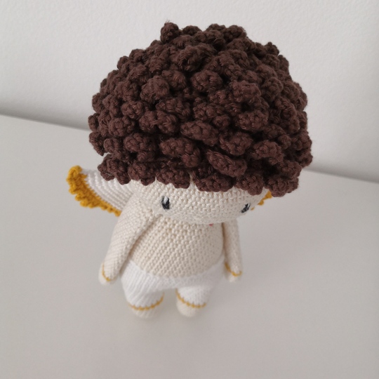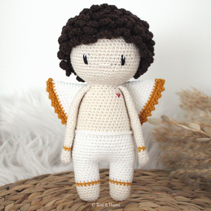 „Engel Gabriel“ wird bei angegebener Wolle und Häkelnadel ca. 20 cm groß.
