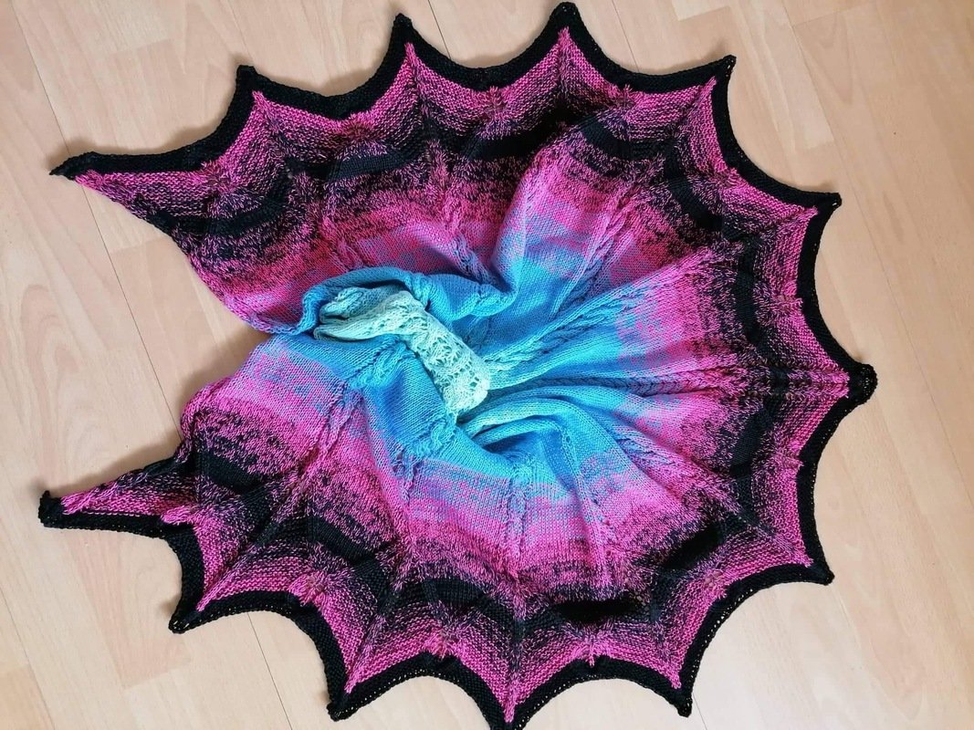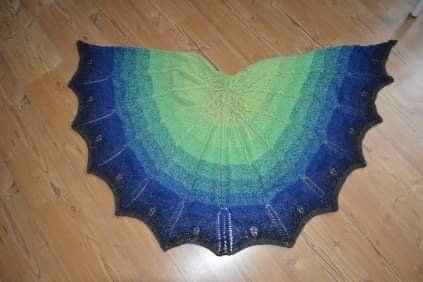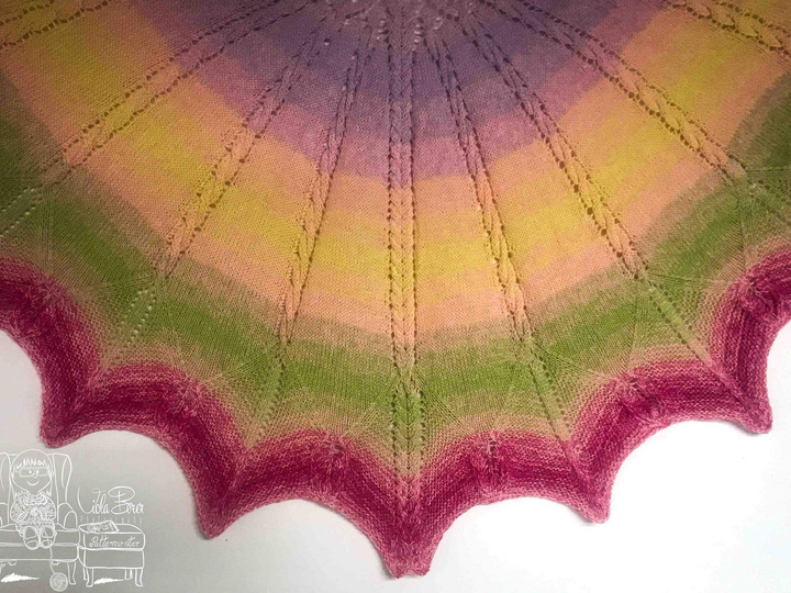 Diese wunderschöne spezielle Schultertuch in einer halbrunden Form ist ein besonderes Strickstück.