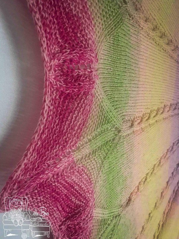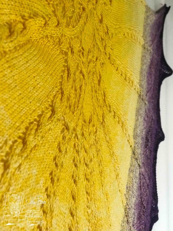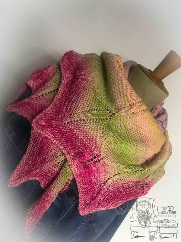 für das ganze Tuch jedoch ist eine Strickschrift (Chart) mit genauer Beschreibung der einzelnen Maschen hinterlegt.