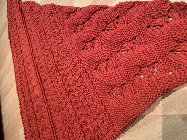 Du bekommst eine Anleitung, die anfängergeeignet ist, um das Tuch in beliebiger Größe nachzuarbeiten.