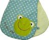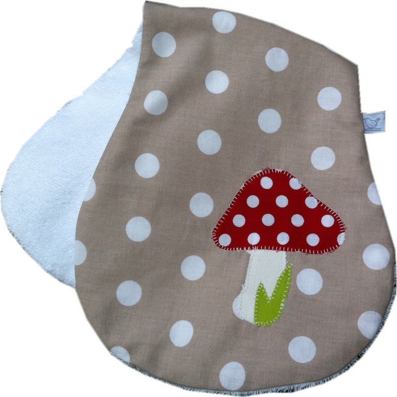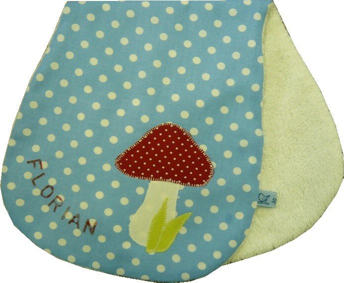 Eine Seite wird aus saugfähigem Frottee gearbeitet, die andere aus einem einfachen Baumwollstoff oder Jersey. Diese Seite kann dann noch eine schöne Applikation erhalten oder einen Namensschriftzug.