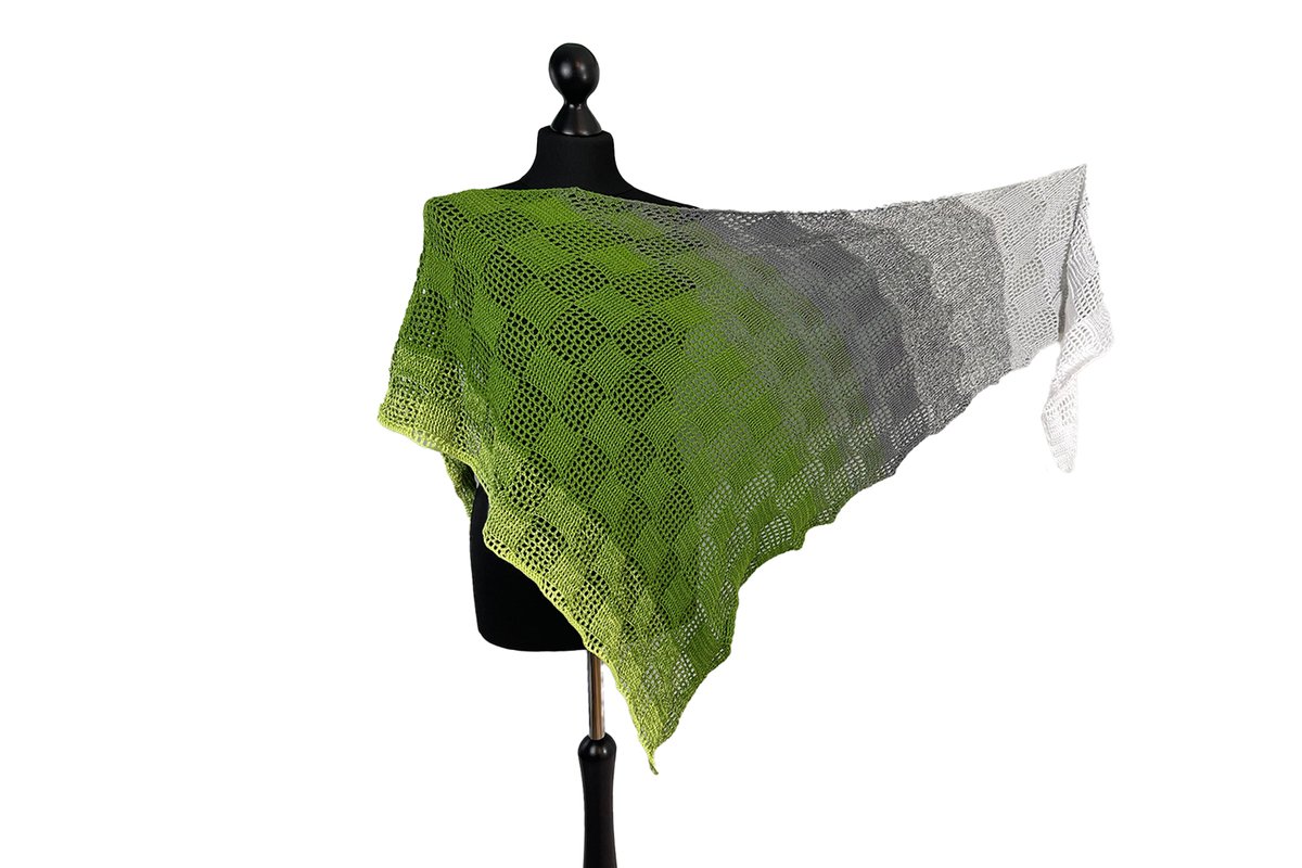 Für das Tuch wurde Bobbel "Green Lang von MT.Bobbelwelt verwendet. 1500LL 3Fädig und mit