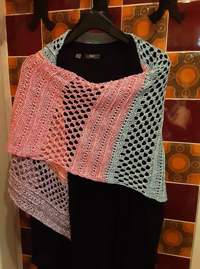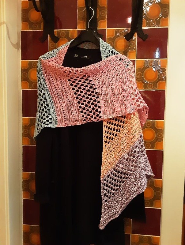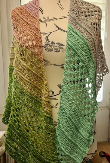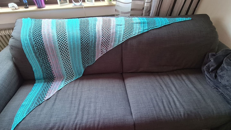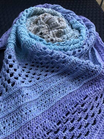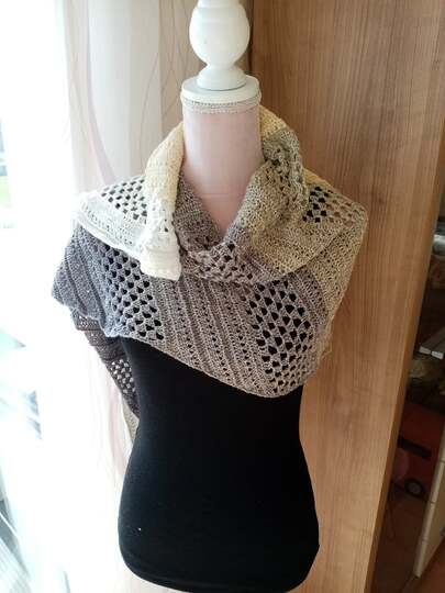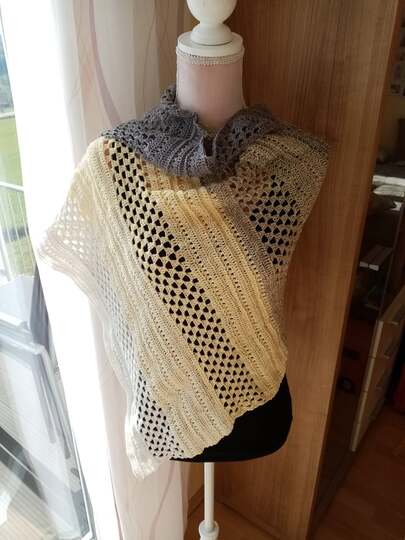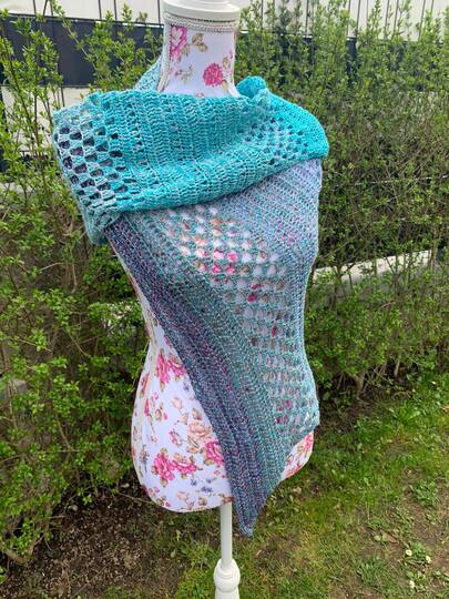 Hier könnt Ihr die Anleitung zum asymmetrischen Tuch Nata-nja erwerben, nicht das fertige Häkelstück.