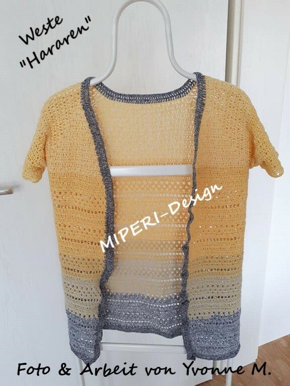 Hinweis: Beim vorgestellten Produkt handelt es sich NICHT um das fertig gehäkelte Stück, sondern lediglich um eine Schritt-für-Schritt-Häkel-Anleitung, die dabei hilft, selbst diese Weste zu häkeln.