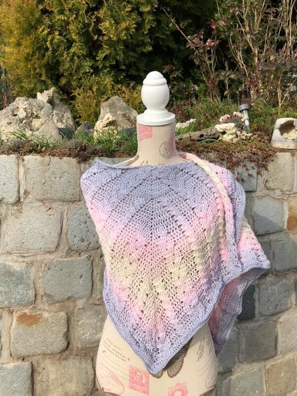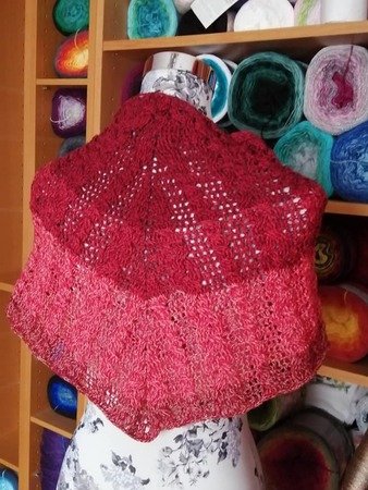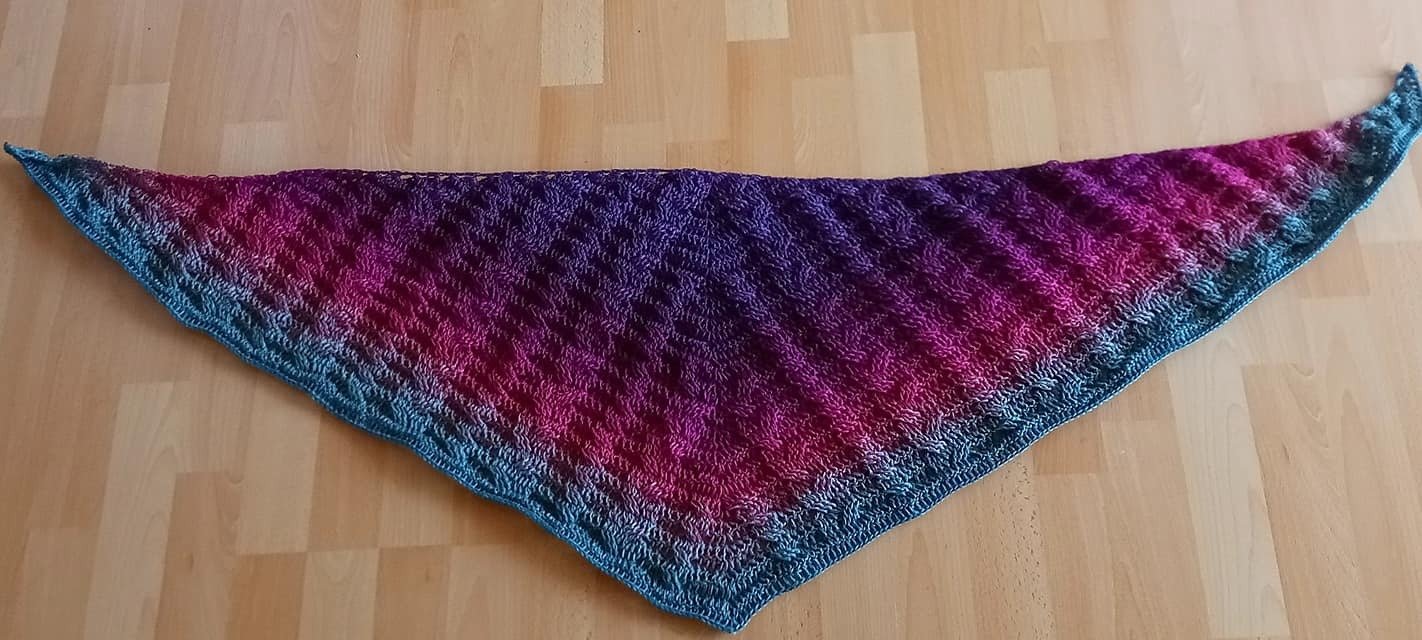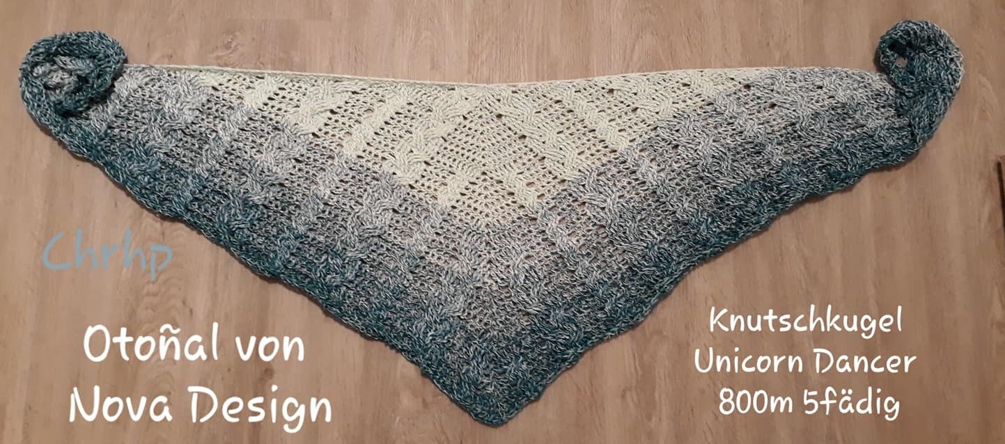 Diese Variante des „Otoñal“, ist im Gegensatz zu einer klassischen Variante, länger und nicht so tief gearbeitetes Dreieckstuch.