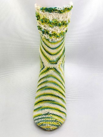 Die Two Way (Zwei Wege) Socke "Woodstock" wird von der Ferse aus gestrickt. Sie heißt zwei Wege, weil sie einmal eine Top Down Socke ist, wir stricken den Fuß von oben nach unten und einmal ist sie eine Toe Up Socke, wir stricken den Schaft von unten nach oben. Wir beginnen an der Ferse mit flachen Zunahmen die nicht drücken, danach stricken wir den Fuß mit der Spitze und anschließend den Schaft mit einem kleinen Keil oberhalb vom Spann. Es folgt der Anti Rutsch Kniff und das Schaftmuster. In der Anleitung beschreibe ich Euch Schritt für Schritt mit Text und Foto´s wie Ihr die Ferse, den Fuß mit Spann und den Schaft stricken könnt. Zusätzlich gibt es eine Strickschrift für das Schaftmuster und dem Anti Rutsch Kniff. Auch hier beschreibe ich Rundenweise (Nadel für Nadel) das Strickmuster. Ich habe als Spitze die Schneckenspitze beschrieben, Ihr könnt das Schaftmuster und die Spitze aber auch durch Eure Lieblingsvariante ersetzen. Das Video zeigt auch den Maschenanschlag mit 2 Nadeln. In Fotostrecken erkläe ich die Zunahmen und Abnahmen. Falls Fragen auftauchen, stehe ich zeitnah zur Verfügung.