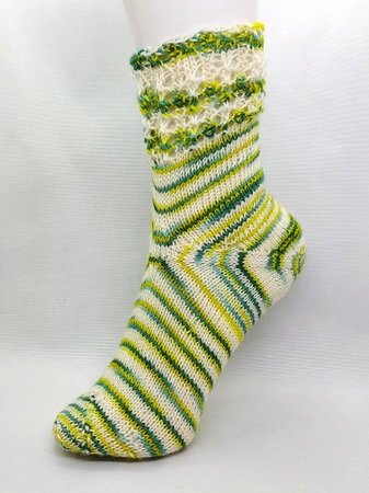Meine Socke hat Gr.37/38 und eine Schaftlänge von 10 cm. Verbrauch ca. 70g/Paar.