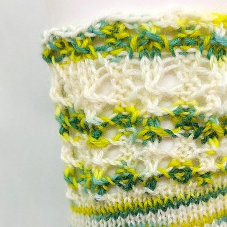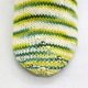 Maschenprobe: 4-fach Sockenwolle, Nadelspiel mit der Nadelstärke 2,5 mm, 10 x 10 cm = 47 Reihen und 32 Masche.