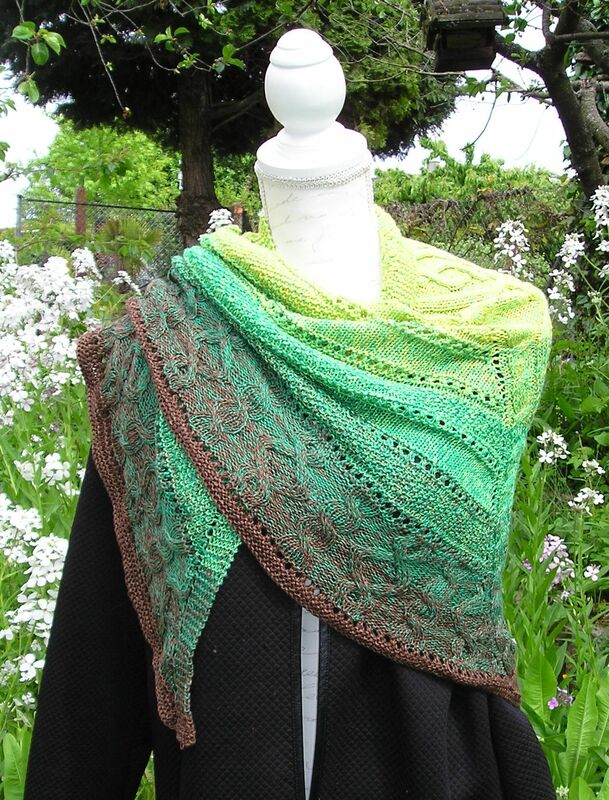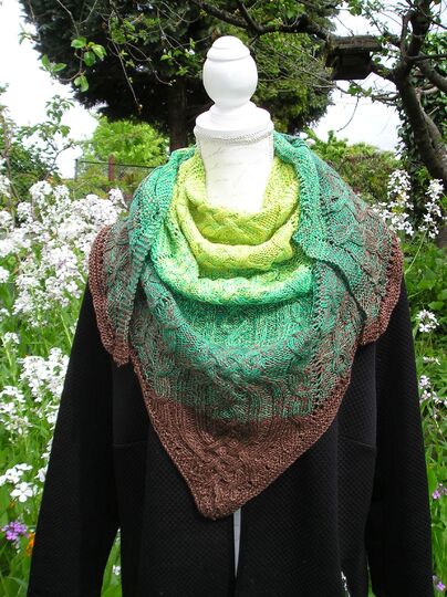 Strickanleitung Dreieckstuch "Irland". keltische Knoten und Zöpfe prägen die Tuchmitte