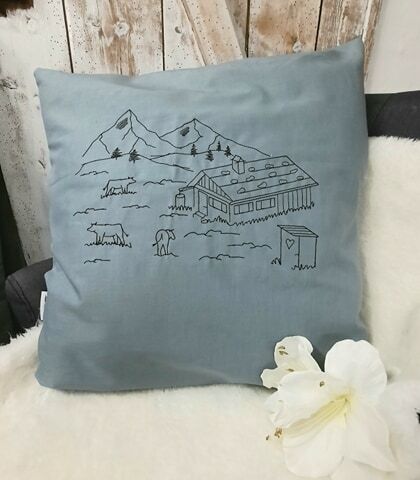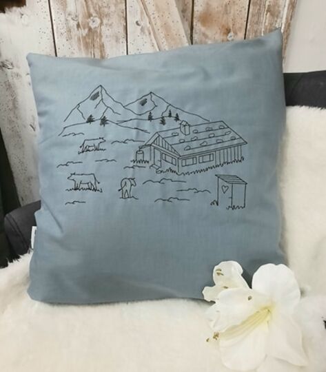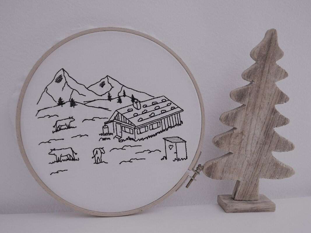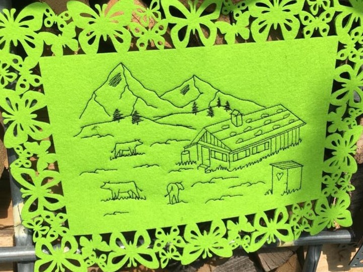 Redwork Stickdatei Almwiese ---- ab in die Berge! Eine kleine Auszeit nehmen mit dieser schnell gestickten Redwork Stickdatei Almwiese. Enthalten sind 4 verschiedene Größen.