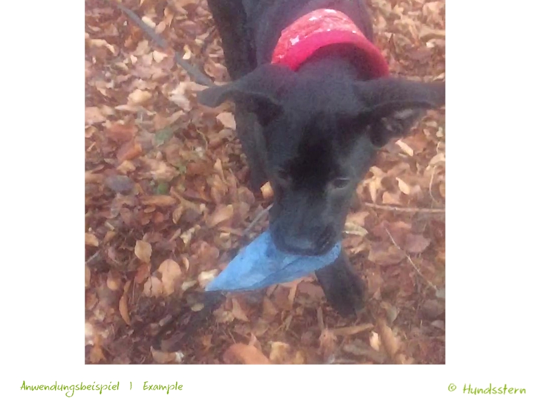 Für Spiel und Training auf der Gassirunde. Durch die dreieckige Form steht immer eine Seite hoch, dadurch können auch Anfänger-Hunde den Dummy leicht aufnehmen.