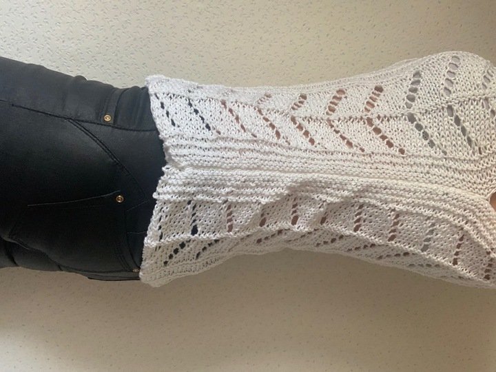 Aufgrund des Musters ist es in der Breite sehr dehnbar (also evtl. auch größer) und passt sich der Körperform an.