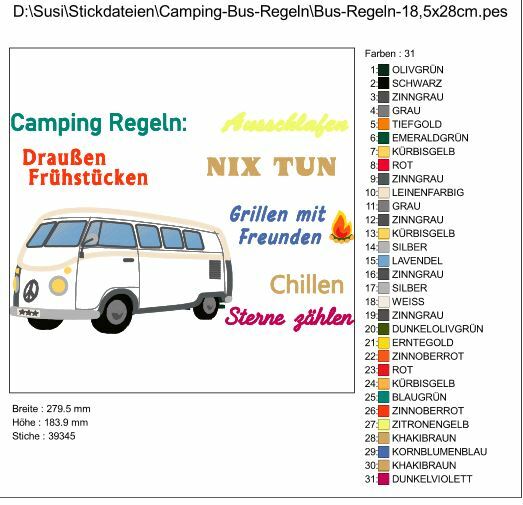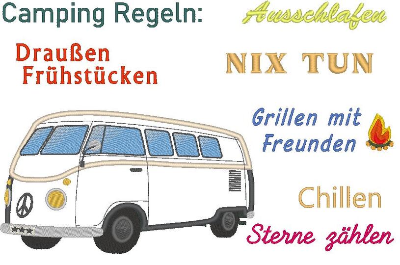 ♥ die Camping Regeln als Stickdatei ♥