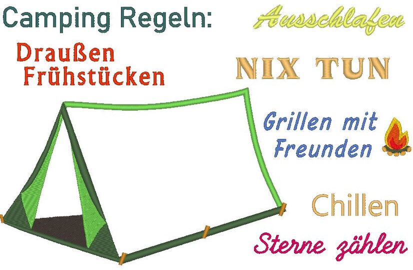 ♥ die Camping Regeln als Stickdatei ♥
