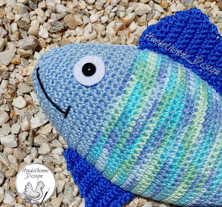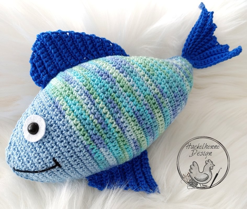 Der Fisch ist ein absolutes Anfängerprojekt, da er hauptsächlich aus Lm, Km und Fm besteht. Er wird in Reihen gehäkelt und Du solltest das Ab.- und Zunehmen von Maschen beherrschen.