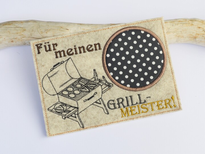 Jetzt heißt es wieder: schmeißt den Grill an!!! Hier nun ein passender Unetrsetzer für den Grillmeister! Schnell gestickt!
