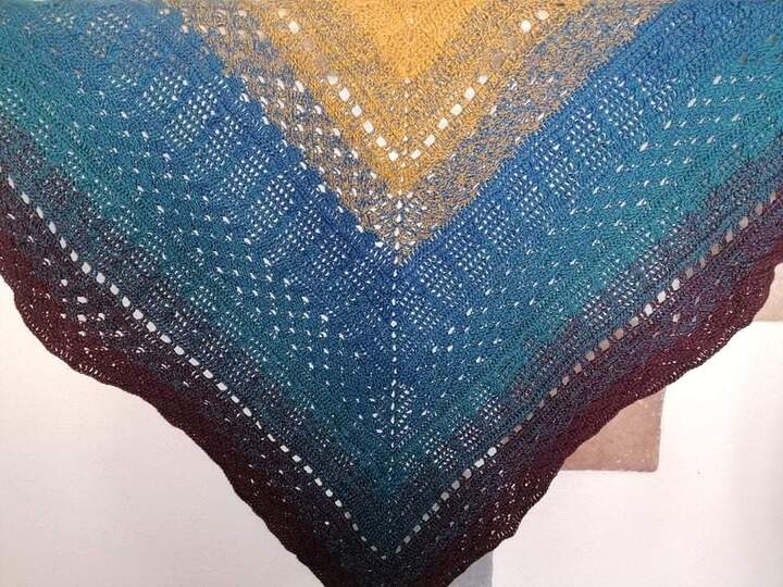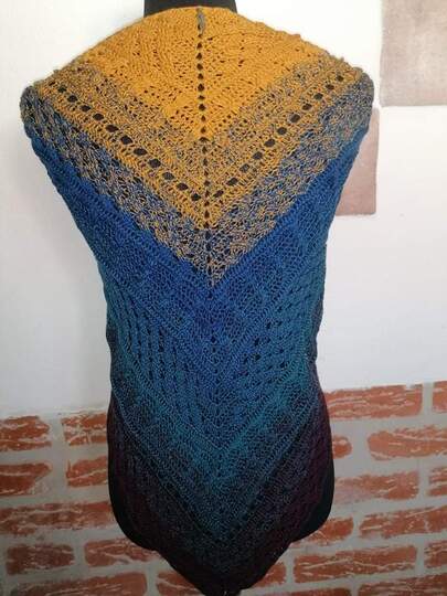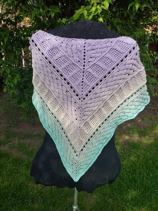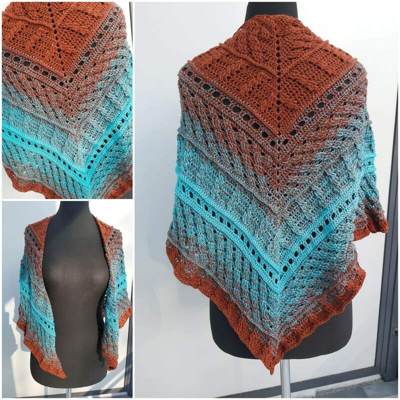 Die Anleitung zum Tuch besteht aus schriftlich ausformulierten Reihen und beinhaltet Häkelschriften.